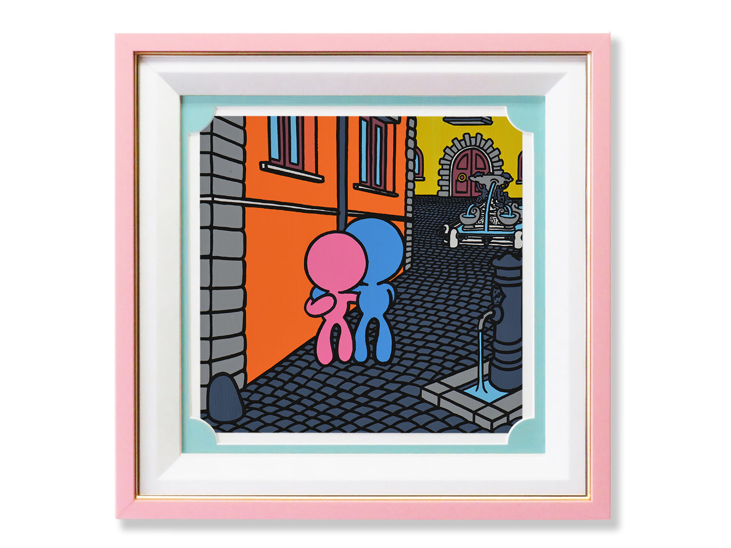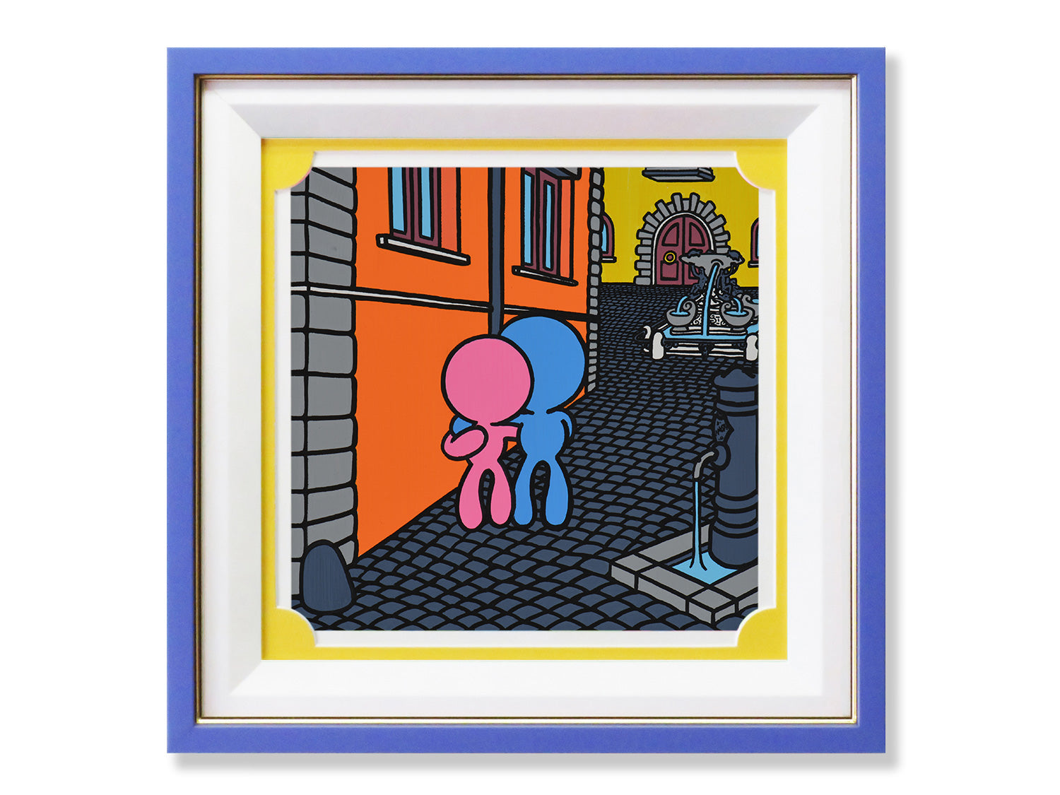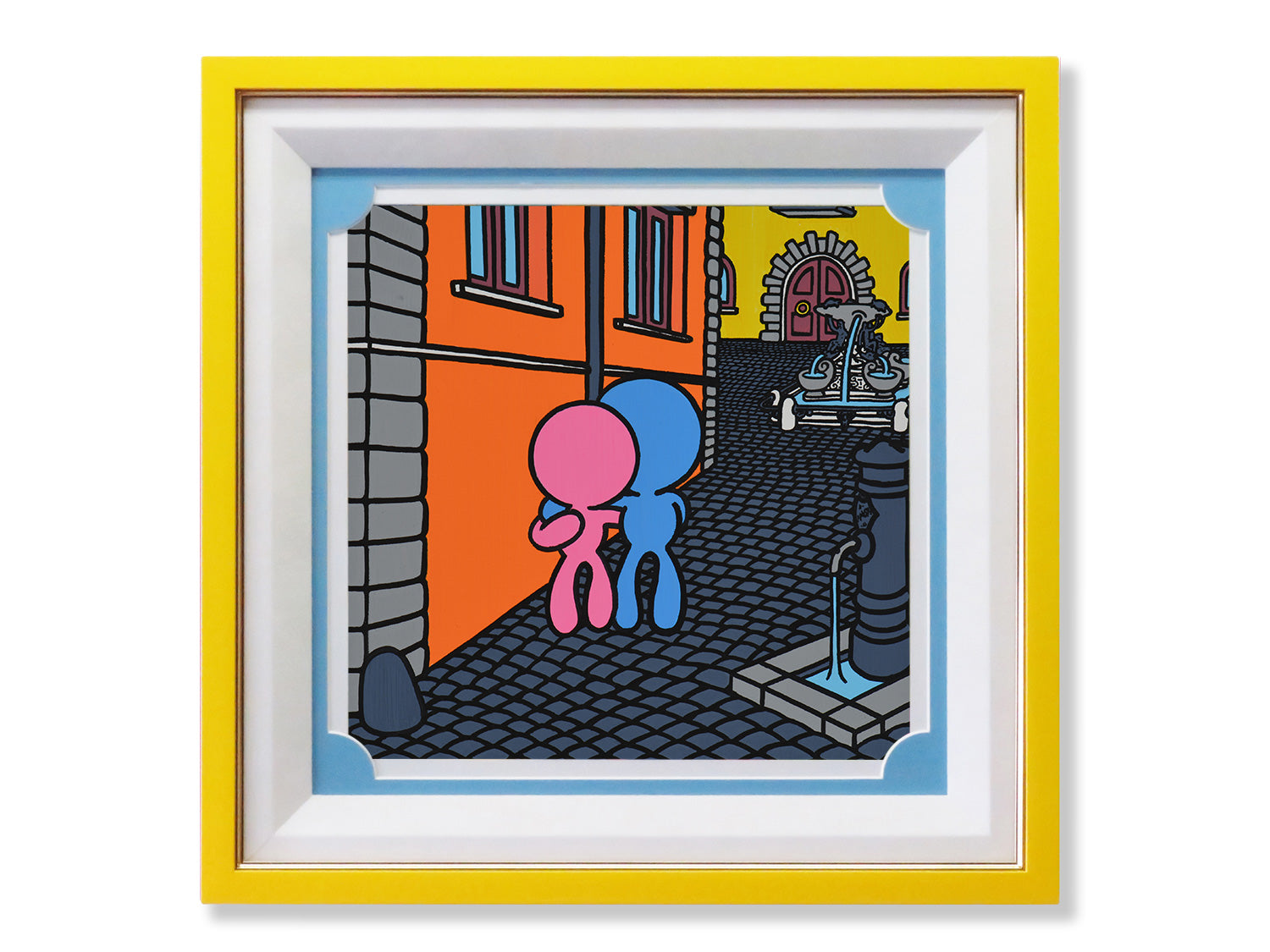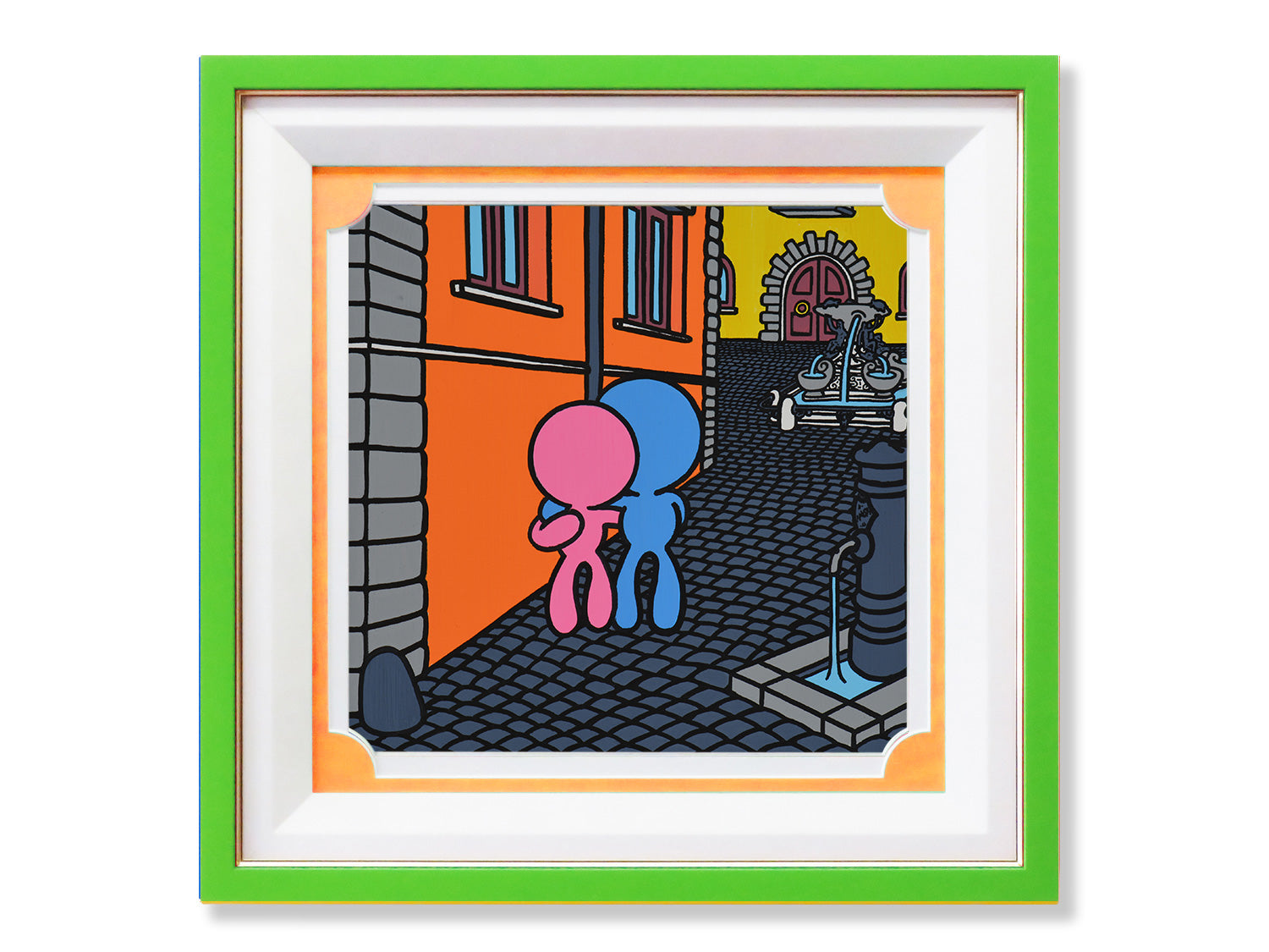 It depicts a typical view of an alleyway in the historic center of Rome. It is not a real view, but a compilation of different elements of the existing city.